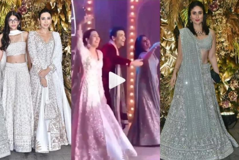 वहीं करिश्मा कपूर सिल्वर और क्रीम रंग के लहंगे और साथ में लांग जैकेट के साथ तैयार हुईं थी। जबकि करिश्मा कपूर की बेटी ने भी सिल्वर रंग के लहंगे पहन रखा था। जिसमें दोनों मां-बेटी का लुक खूबसूरत दिख रहा था।