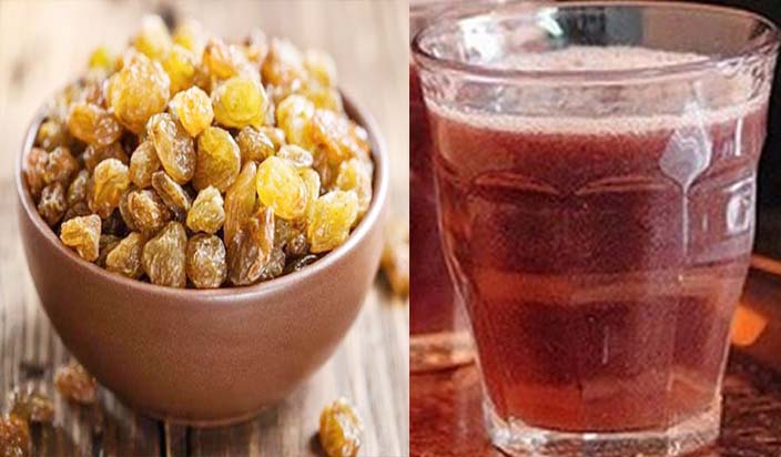 एक पैन में 1 गिलास पानी उबालें और उसमें मुठ्ठीभर किशमिश भिगो कर रातभर के लिये रख दें। दूसरे दिन सुबह इस पानी को छान कर गैस की धीमी आंच पर हल्का गरम कर लें। इस पानी को सुबह खाली पेट पियें और 30-35 मिनट रूक कर ब्रेकफास्ट खाएं।