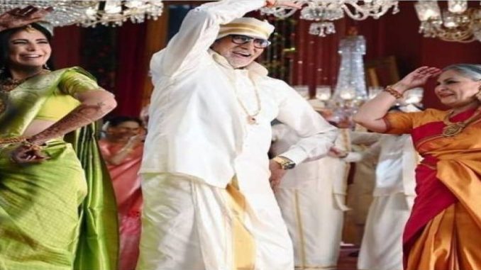 वहीं इसी ओकेजन की दूसरी तस्वीर में कटरीना भी साथ नजर आ रही हैं. इसमें कटरीना हरे रंग की साड़ी में अमिताभ और जया संग ठुमके लगाती नजर आईं.