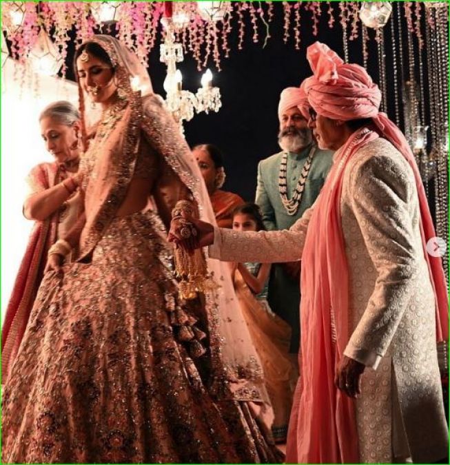 दुल्हन के लिबास में सजी कटरीना को विदा करते अमिताभ बच्चन और जया बच्चन भी रॉयल लुक में दिखे.