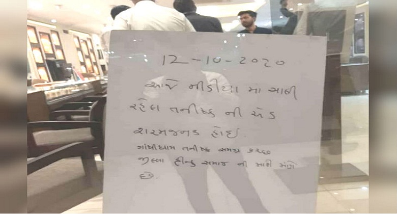 गुजरात के शो रूम पर आए धमकी भरे फोन; तनिष्क ने शो रूम पर चिपकाया माफीनामा