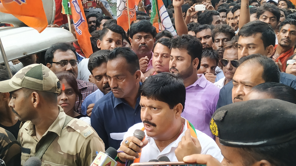 पश्चिम बंगाल में देश के गद्दारों को… नारे लगाने वाले तीन भाजपा कार्यकर्ताओं को कोलकाता पुलिस ने गिरफ्तार कर लिया है। नए बाजार पुलिस थाने में नारे लगाने वाले कार्यकर्ताओं के खिलाफ शियाकत दर्ज की गई थी। बता दें कि रविवार को केंद्रीय गृहमंत्री अमित शाह ने कोलकाता में रैली को संबोधित किया था। अमित शाह की रैली में जाने वाले भाजपा कार्यकर्ताओं के एक गुट ने देश के गद्दारों को… का नारा लगाया था और पार्टी का झंडा हाथ में ले रखा था।