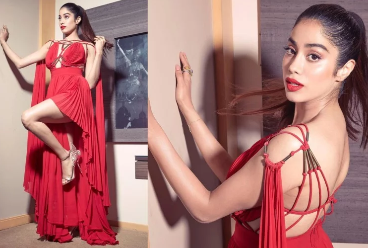 स्टाइल डीवा जान्हवी कपूर ने रेड गाउन कैरी कर पावर ड्रेसिंग की है। जान्हवी के गाउन की डिजाइनिंग काफी अलग है। ब्राइट मेकअप, रेड लिपस्टिक, हाई पोनी हेयरस्टाइल और हाई हील्स मैच कर लुक को पूरा किया है।