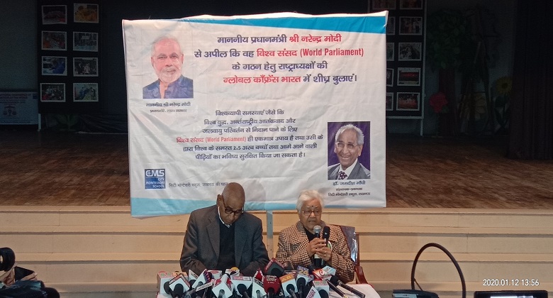 प्रेस कान्फेंंस में पत्रकारों को संबोधित करते हुए डॉ. गांधी ने आगे कहा कि ‘व​सुधैव कुटुम्बकम’ की यही विचाारधारा हमारे संविधान, खासकर भारतीय संविधाान का अनुच्छेद 51 वसुधैव कुटुम्बकम की भावना को अक्षरश: चरितार्थ करता है और आज जरूरत है कि इस भावना को विश्व के कौने—कौने तक प्रचारित—प्रवाहित किया जाये। डॉ. जगदीश गांधी ने जोर देते हुए कहा कि विश्व की वर्तमान परिस्थितियों को देखते हुए विश्व संसद, विश्व सरकार एवं प्रभावशाली अन्तर्राष्ट्रीय कानून व्यवस्था का गठन अब अनिवार्य आवश्यकता है और यही विश्व एकता व विश्व शान्ति का एकमात्र विकल्प भी है।