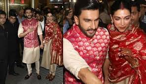 अभी बीते दिनों 14 और 15 नवंबर को दीपिका पादुकोण और रणवीर सिंह  ने इटली में कोंकणी और सिंधी रीति-रीवाज से शादी कर ली है. वही वेडिंग फंक्शन्स पूरे होने के बाद रणवीर अपनी पत्नी दीपिका को लेकर  मुंबई लौट चुके है.जब दोनों को मुंबई एयरपोर्ट पर देखा गया तो इस दौरान दोनों मैचिंग कलर के आउटफिट्स में नजर आए. दीपिका यहां गोल्डन रंग के सूट और पिंक दुप्पट्टे में दिखीं, जबकि रणवीर ने कुर्ते पायजामे के साथ पिंक रंग की कोटी पहनी थी दोनों मैचिंग गोगल्स में नजर आए.वही दीपिका पादुकोण की मांग में सिंदूर साफ देखा जा सकता है.