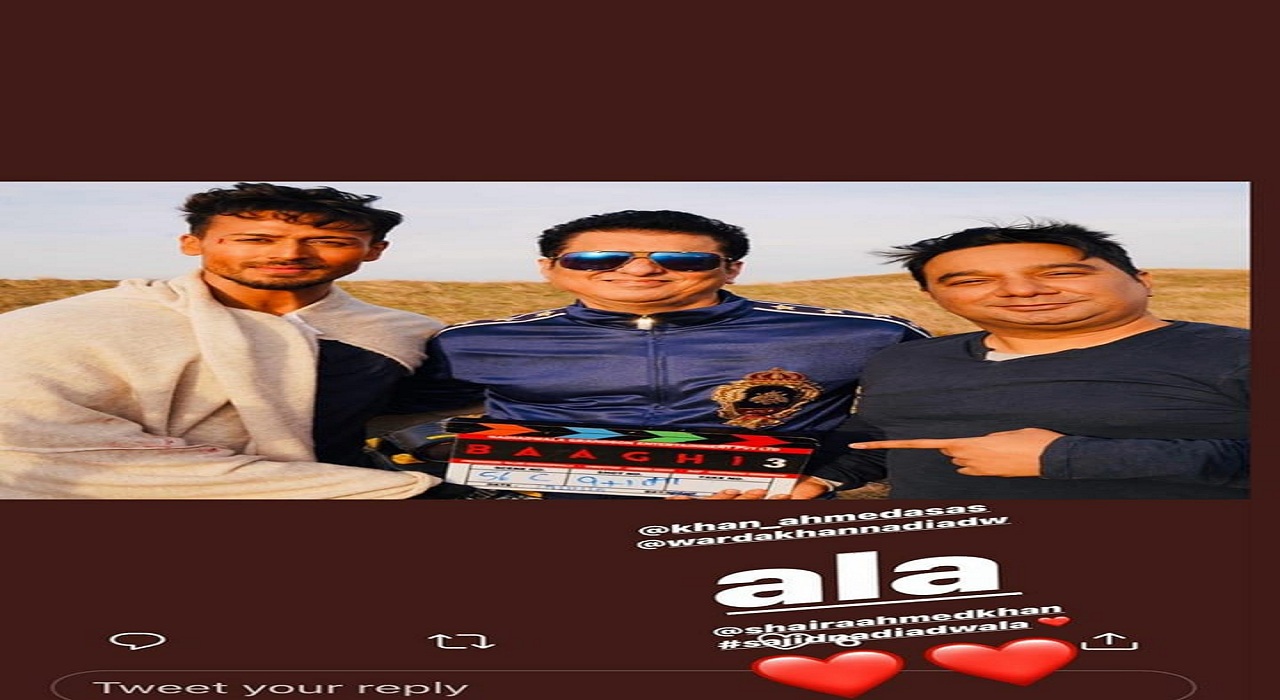 टाइगर श्रॉफ ने शूटिंग से साजिद नाडियाडवाला और निर्देशक अहमद खान के साथ अपने सोशल मीडिया पर एक तस्वीर साझा की है।