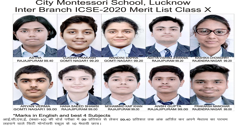 इसके अलावा, आई.एस.सी. (कक्षा-10) की बोर्ड परीक्षा में सी.एम.एस. से कुल 3478 छात्र परीक्षा में बैठ, जिसमें से 1923 छात्रों अर्थात 55.29 प्रतिशत छात्रों ने 90 प्रतिशत से अधिक अंक अर्जित किये हैं तथापि 723 छात्रों ने 95 प्रतिशत से अधिक अंक अर्जित किये हैं। इसके अलावा, आई.सी.एस.ई. की इण्टर-कैम्पस मेरिट लिस्ट में 157 छात्रों ने टाॅप-10 में जगह बनाई है।कुल मिलाकर, सी.एम.एस. से कुल 6283 छात्र आई.एस.सी. एवं आई.सी.एस.ई. परीक्षाओं में बैठे, जिसमें से 3389 छात्रों ने 90 प्रतिशत से लेकर 99.75 प्रतिशत तक अंक अर्जित किये हैं। शेष छात्रों ने भी अत्यन्त उच्च अंक अर्जित कर सी.एम.एस. का नाम गौरव बढ़ाया है। इस प्रकार आई.एस.सी. एवं आई.सी.एस.ई. परीक्षा परिणामों ने एक बार फिर दिखा दिया कि गुणात्मक शिक्षा के क्षेत्र में सिटी मोन्टेसरी स्कूल सर्वश्रेष्ठ है। इन परीक्षा परिणामों में सिटी मोन्टेसरी स्कूल के मेधावी छात्रों ने अभूतपूर्व प्रदर्शन कर लखनऊ का नाम पूरे देश में गौरवान्वित किया है।