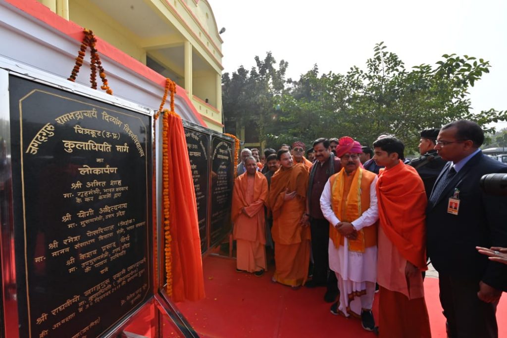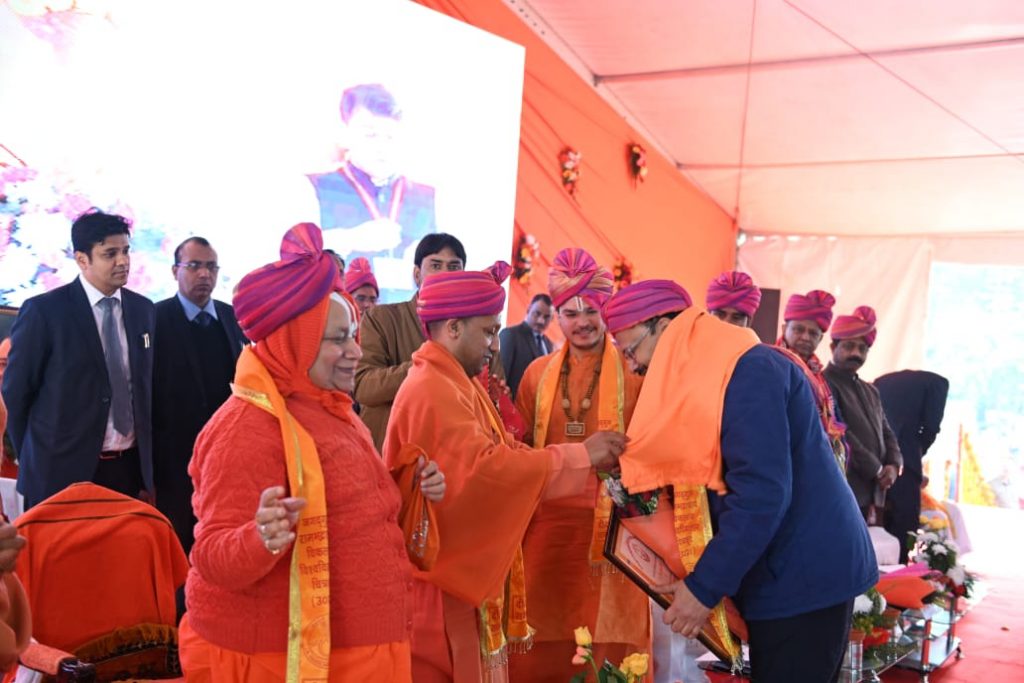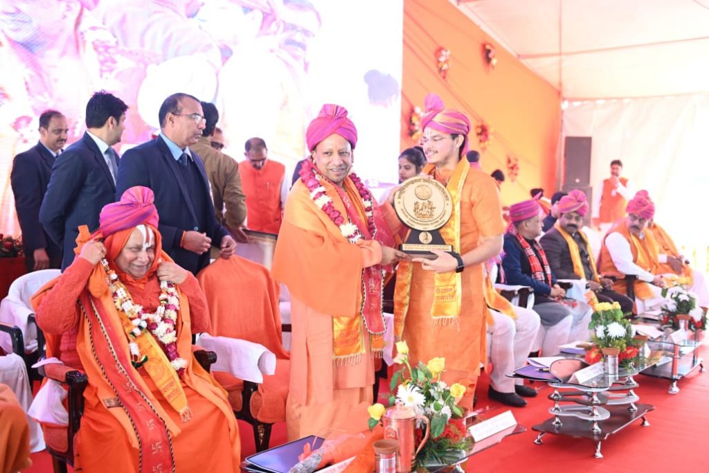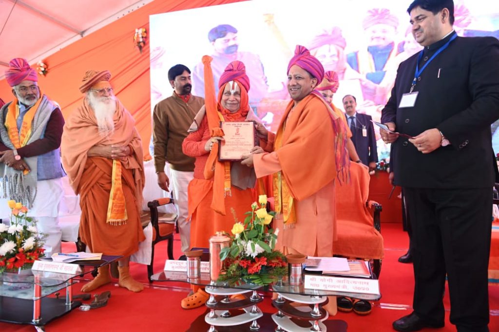 - मुख्यमंत्री ने जगद्गुरु रामानन्दाचार्य स्वामी रामभद्राचार्य जी को उ0प्र0 हिन्दी संस्थान के 43वें स्थापना दिवस पर ‘साहित्य भूषण‘ सम्मान प्रदान किया विश्वविद्यालय के केन्द्रीय ग्रन्थालय, जानकी उद्यान, आर0ओ0 प्लाण्ट, अष्टावक्र सभागार, कुलाधिपति मार्ग, आचार्य एवं अधिकारी आवासों का लोकार्पण दिया