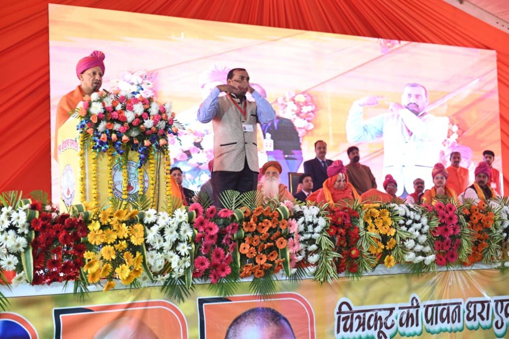 मुख्यमंत्री जी ने कहा कि मौसम खराब होने के कारण गृहमंत्री, भारत सरकार श्री अमित शाह जी इस कार्यक्रम में शामिल नहीं हो पाये, किन्तु उन्होंने अपनी ओर से शुभकामनाएं देने के लिए कहा है, इसलिए मैं गृहमंत्री जी की तरफ से भी आपको शुभकामनाएं देता हूँ। मुख्यमंत्री जी ने कहा कि पूज्य संतों की साधना व्यर्थ नहीं जाती है। संतों की 500 वर्षों की साधना के बाद श्रीराम जन्मभूमि का फैसला आया है और अब अयोध्या में शीघ्र ही भव्य राम मंदिर बनेगा।