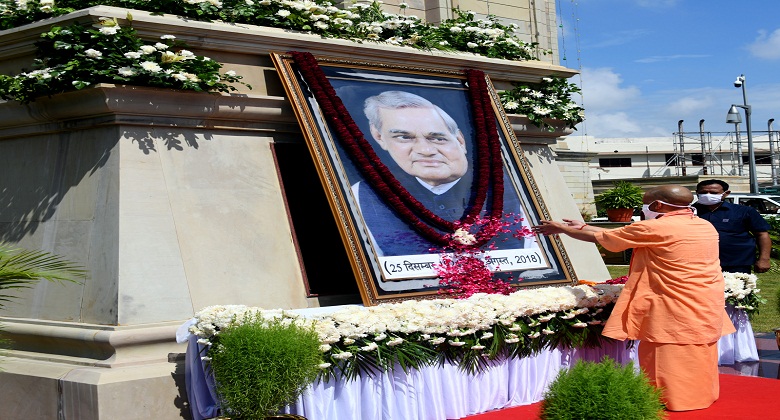 अटल बिहारी वाजपेयी की पुण्यतिथि पर पुष्पांजलि देते मुख्यमंत्री योगी आदित्यनाथ