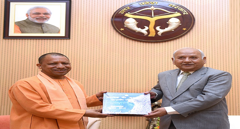 उत्तर प्रदेश के मुख्यमंत्री योगी आदित्यनाथ से भेंट करते लोकायुक्त न्यायमूर्ति संजय मिश्रा Lucknow 2020-03-13 Dr. Ajay Shukla