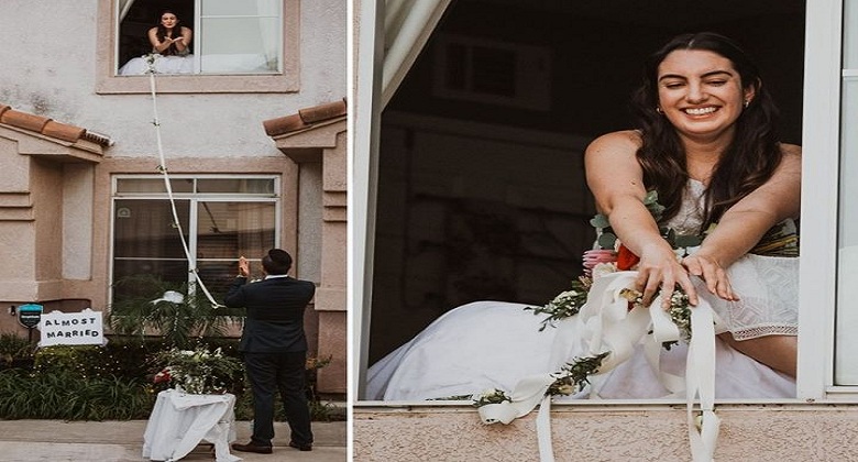 शादी के दौरान दुल्हन पहले फ्लोर की खिड़की पर बैठी और दूल्हा नीचे खड़ा रहा। दोनों ने एक दूसरे को 32 फीट की रिबन के जरिये बांधकर रखा था। इसी के जरिए रिंग एक्सचेंज सेरेमनी भी हुई। इससे पहले भी दोनों की शादी कई बार टल चुकी थी। इसलिए इस बार वे इसे टालना नहीं चाहते थे। शादी में 40 मेहमान भी शामिल हुए। इनमें से 10 मेहमानों ने सेरेमनी अटैंड की और बाकी 30 ने सोशल डिस्टेंसिंग का पालन करते हुए कार में बैठकर ही सेरेमनी देखी।