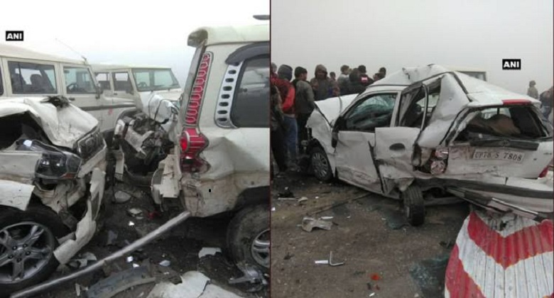 (www.arya-tv.com) आगरा-लखनऊ एक्सप्रेस वे पर कोहरे के चलते शनिवार को चार वाहन भिड़ गए। हादसे में एक रोडवेज बस व वॉल्वो बस सवार 60 यात्रियों को चोटें आई हैं। जिसमें से 10 यात्रियों को गंभीर हालत में लखनऊ ट्रामा सेंटर रेफर किया गया है। गंभीर रूप से घायलों में दोनों बसों के चालक व एक परिचालक भी शामिल है।