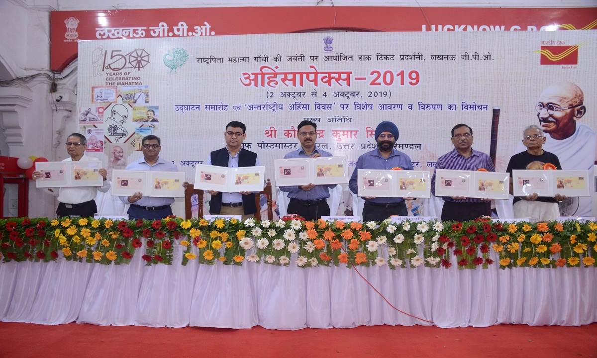 (arya-tv lko)राष्ट्रपिता महात्मा गाँधी पर आधारित तीन दिवसीय डाक टिकट प्रदर्शनी अहिंसापेक्स–2019 का लखनऊ जीपीओ में गाँधी जयंती के दिन शुभारम्भ किया गया। उत्तर प्रदेश परिमंडल के चीफ पोस्टमास्टर जनरल श्री कौशलेन्द्र कुमार सिन्हा, निदेशक डाक सेवाएँ कृष्ण कुमार यादव, पुलिस महानिदेशक, आर्थिक अपराध अनुसंधान संगठन डॉ. राजेन्द्र पाल सिंह ने दीप प्रज्वलन कर इसका शुभारम्भ किया। इस अवसर पर देश-विदेश में गाँधी जी पर जारी हजारों डाक टिकटों से लोग रूबरू हुए। “अन्तराष्ट्रीय अहिंसा दिवस” एवं कैलीग्राफी चिकनकारी पर विशेष आवरण एवं विशेष विरूपण का विमोचन भी किया गया। जवाहर नवोदय विद्यालय, लखनऊ के विद्यार्थियों ने बापू की सीख और स्वच्छता अभियान जैसे विषयों पर सांस्कृतिक कार्यक्रम प्रस्तुत कर प्रदर्शनी को और भी रोचक बना दिया।