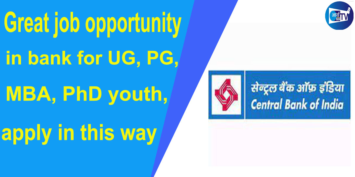 (www.arya-tv.com) यूजी, पीजी, एमबीए, पीएचडी युवाओं के लिए बैंक में जॉब का शानदार मौका है। सेंट्रल बैंक ऑफ इंडिया (Central Bank of India, CBI) ने विभिन्न पदों पर भर्ती निकाली है। इसके तहत सिक्योरिटी ऑफिसर, रिस्क मैनेजर, फाइनेंशियल एनालिस्ट क्रेडिट ऑफिसर, इकनोमिस्ट, डाटा साइंटिस्ट, टेक्निकल ऑफिसर, लॉ ऑफिसर, इनकम टैक्स ऑफिसर सहित अन्य पदों पर भर्तियां होनी है।
