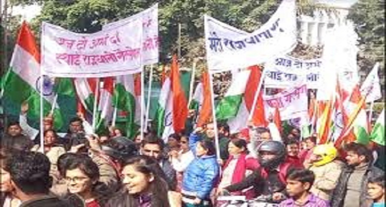 CAA के विरोध में महिलाओं की बुलंद आवाज़, निकाली तिरंगा यात्रा