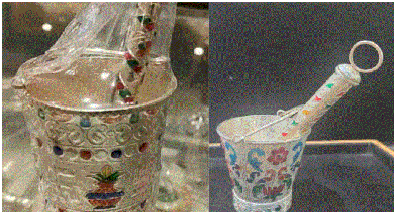 चढ़ती कीमतों से चमकती चांदी के बीच बडे़ लोगों का ”सगुन का बाजार” भी चमकने लगा है। बाजार में चांदी की पिचकारियों और बाल्टियों का भी सर्राफा बाजार में आगाज हो गया है। मीनाकारी कारीगरी वाली चांदी की पिचकारी और बाल्टी लोगों को भा रही है। नक्काशीदार पिचकारियों का सेट लोगों को खूब पसंद आ रहा है। संपन्न घराने जहां इसे सगुन मान कर चल रहे हैं वहीं सामान्य लोग इसे बचत के रूप में देख रहे हैं। मसलन रंगोत्सव भी हो जाए और खरी चीज बचत के रूप में परिजनों के पास भी रखी रहे। महंगी होने के बाद भी लोग इन्हें पसंद कर रहे हैं। वजन के हिसाब से पिचकारी और बाल्टी की कीमत है।