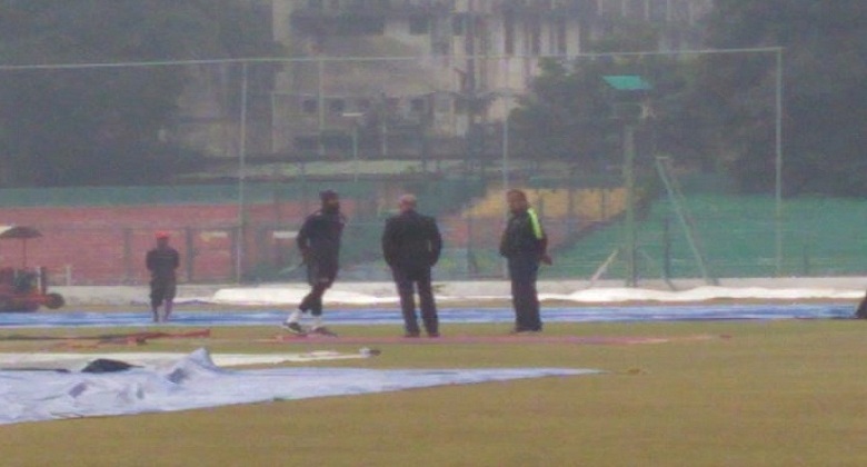 मैच रेफरी और अंपायर ने सुबह सबसे पहले 9.30 बजे निरीक्षण किया तो दो घंटे तक इंतजार करने के लिए कहा। पूर्वाह्न 11.30 बजे और अंतिम निरीक्षण 12.10 बजे करने के बाद मैदान की आउटफील्ड काफी गीली होने के कारण आखिरकार मैच न होने का फैसला लिया। अब दूसरे दिन का खेल मौसम के रुख पर निर्भर करेगा।