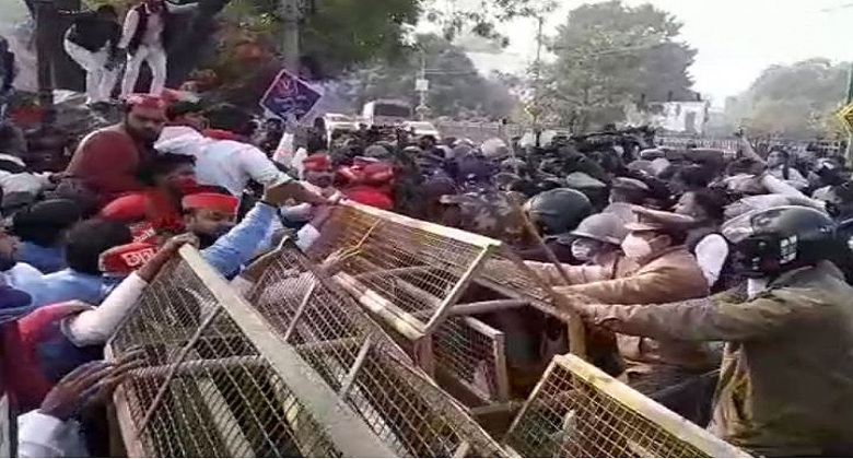 - चंदौली में सपा कार्यकर्ताओं ने जिलाध्यक्ष सत्यनारायण राजभर के नेतृत्व में जिला मुख्यालय पर जुलूस निकाला। यहां सपाइयों की पुलिस से झड़प हुई। पुलिस ने कई कार्यकर्ताओं गिरफ्तार किया है। सभी को नवीन मंडी स्थित अस्थाई जेल ले जाया गया है।