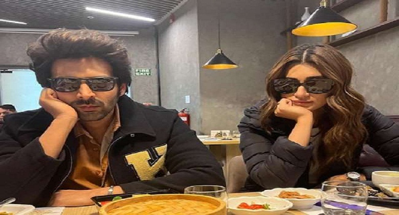 इस तस्वीर को इंस्टाग्राम पर शेयर कर अभिनेता कार्तिक आर्यन ने बताया कि एक्ट्रेस कृति सेनन ने उनसे इस पोस्ट को जबरदस्ती शेयर कराया है। तस्वीर में दोनों एक रेस्त्रां में बैठे हुए हैं और टेबल पर स्नैक्स रखा हुआ भी दिख रहा है। साथ ही दोनों ने ब्लैक कलर के लगाए हुए हैं। इस फोटो को इंस्टाग्राम पर शेयर कर कार्तिक आर्यन ने कैप्शन लिखा, ‘डिस्क्लेमर मैंने अपना और रोहित का पोस्ट डाला, तो कृति ने मुझसे ये पोस्ट जबरदस्ती करवाया है’।