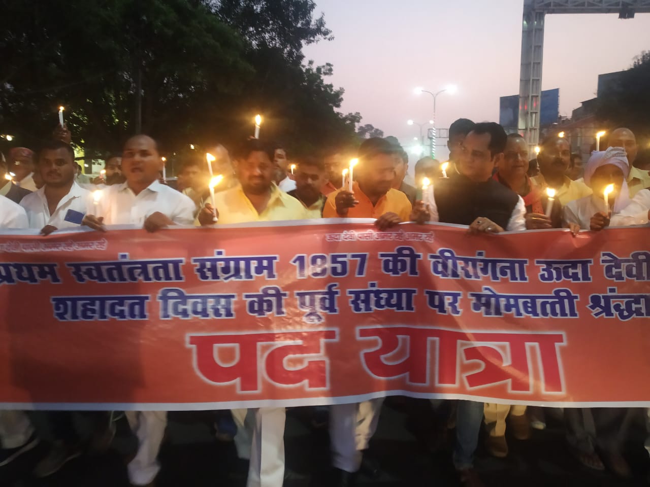लखनऊ(राहुल तिवारी)। 1857 ई के गदर की नायिका वीरांगना उदा देवी पासी जी के शहादत दिवस की पूर्व संध्या पर मोहनलालगंज भाजपा सांसद एवं भारतीय जनता पार्टी अनुसूचित जाति मोर्चा के प्रदेश अध्यक्ष व पारख महासंघ के राष्ट्रीय अध्यक्ष कौशल किशोर जी की अगुवाई में वीरांगना ऊदा देवी पासी को श्रद्धांजलि देने के लिए हजरतगंज स्थित गांधी प्रतिमा से सिकंदरबाग चौराहे पर स्थिति वीरांगना ऊदा देवी पासी की प्रतिमा तक सैकड़ों लोगों ने कैंडल मार्च निकाला। इस कैंडल मार्च में भाजपा कार्यकर्ताओं के साथ-साथ पारख महासंघ के सैकडों कार्यकर्ता शामिल हुए।