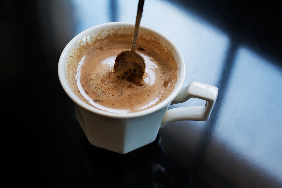 As the milk will be put in the cup, the foam will fall down, which will eventually come on top of the coffee. Now sprinkle cocoa powder on the coffee with the help of strainer.