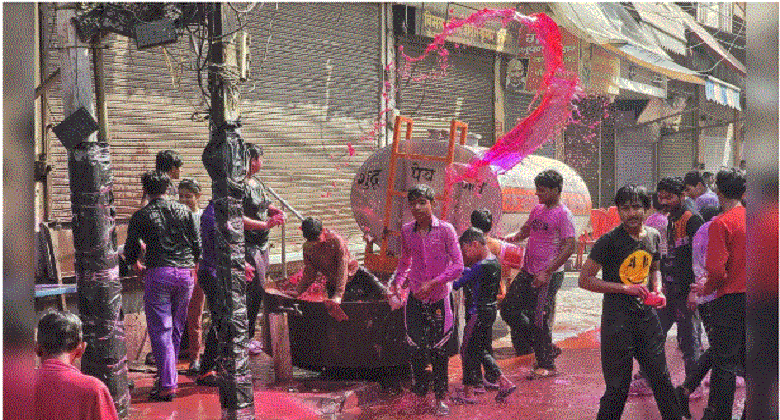 संभल शहर में कोतवाली से लेकर सर्राफा बाजार और बाजार गंज तक लोग जमकर रंग खेल रहे हैं। सड़क पर रंग के बड़े कढाव रखे गए हैं जिसे बच्चे और बड़े रंग उड़ा रहे हैं। इस हालत में पुलिस ने दोनों तरफ बैरियर लगाकर इस इलाके में आम लोगों की आवाजाही रोक दी है ताकि किसी तरह का विवाद खड़ा न हो। रंग एकादशी का जुलूस चंगमल कोठी से शुरू होकर बाजार और कोतवाली से गुजरने के बाद जामा मस्जिद के पास से होकर निकलेगा। इसे देखते हुए बेहद कड़े पुलिस प्रबंध किए गए हैं। जुमे की नमाज को देखते हुए जामा मस्जिद के आसपास भारी संख्या में पुलिस बल तैनात है