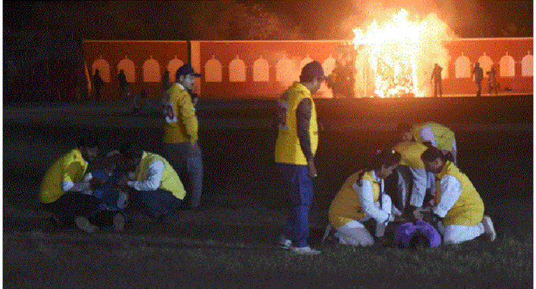 इस दौरान पेट्रोल, लकड़ी एवं गैस सिलेंडर से उत्पन्न आग की घटनाओं से बचाव के उपाय भी प्रदर्शित किए गए। रेस्टोरेंट में गैस सिलेंडर में आग, चलती कार में विस्फोट तथा मैदान में घायल नागरिकों की स्थिति और उन्हें बचाने का सिलसिला क्रमवार दर्शाया जाता रहा। लगभग दो मिनट बाद ऑल क्लियर सायरन बजाया गया। आईसीओ द्वारा कंट्रोल रूम को हताहतों की संख्या एवं स्थिति की जानकारी दी गई तथा एनडीआरएफ, एसडीआरएफ, फायर ब्रिगेड एवं एम्बुलेंस को तत्काल सूचना दी गई। स्वयंसेवकों द्वारा घायलों की सहायता एवं सुरक्षित नागरिकों को स्थानांतरित करने का कार्य किया गया। कुछ मिनटों बाद अव्यवस्था पर ब्रेक लगा। पुलिस लाइन में कुछ इस तरह मॉक ड्रिल के दृश्यों से प्रदेश के मुख्यमंत्री योगी आदित्यनाथ और गणमान्य लोग रूबरू हुए। मंत्री (स्वतंत्र प्रभार) धर्मवीर प्रजापति ने उनका स्वागत किया। दृश्यों की सजीवता देख लोगों ने तालियां बजाईं।