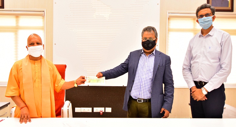 (www.arya-tv.com)प्रमुख सचिव परिवहन राजेश कुमार सिंह तथा परिवहन आयुक्त धीरज साहू मुख्यमंत्री योगी आदित्यनाथ को उनके सरकारी आवास पर परिवहन आयुक्त संगठन के अधिकारियों एवं कर्मचारियों द्वारा एक दिवस के वेतन की धनराशि 26 लाख 51 हजार रुपये का चेक ‘उत्तर प्रदेश कोविड केयर फण्ड/मुख्यमंत्री पीड़ित राहत कोष’ के लिए भेंट करते हुए।