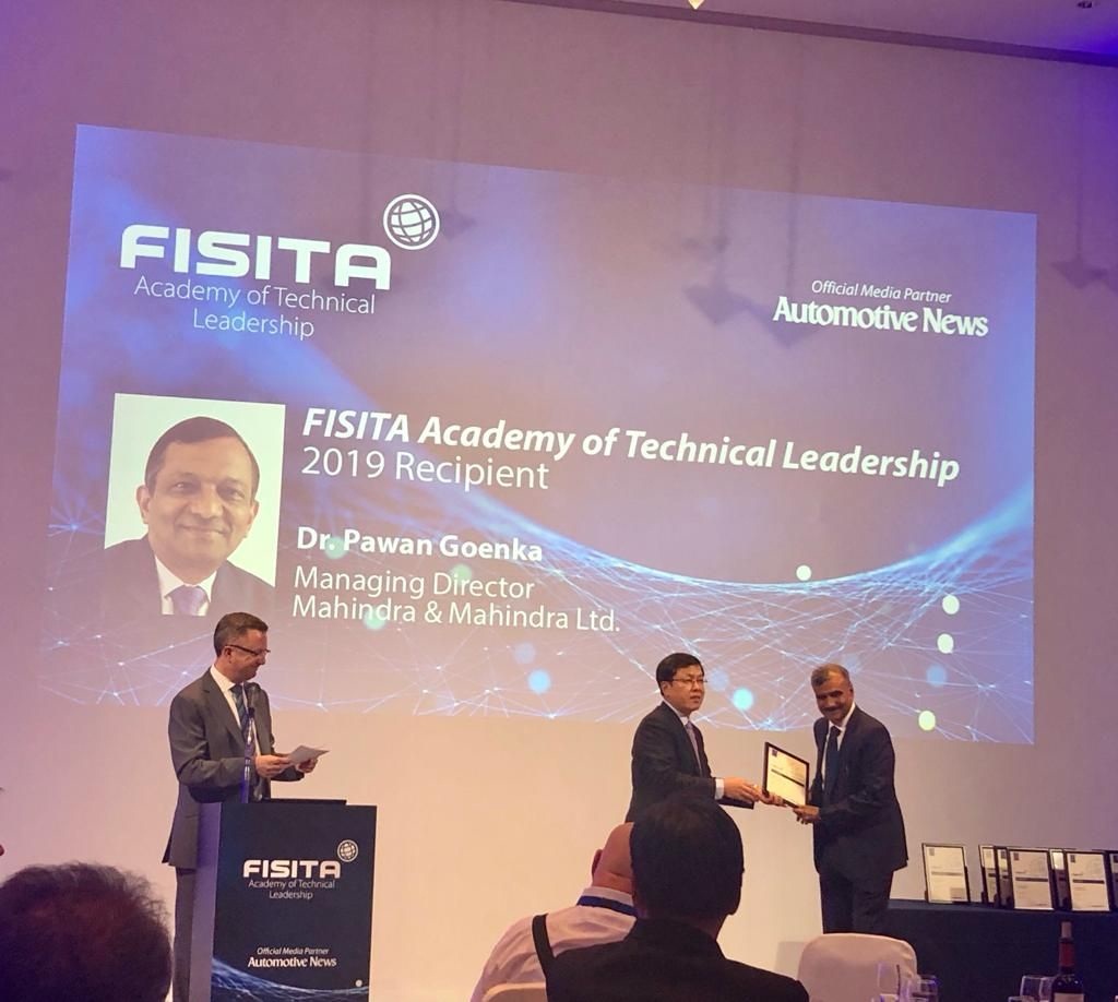 - महिंद्रा एंड महिंद्रा लिमिटेड के मैनेजिंग डायरेक्टर डॉ. पवन गोयनका ने हासिल किया फिसिटा एकेडमी ऑफ टेक्निकल लीडरशिप अवार्ड-2019