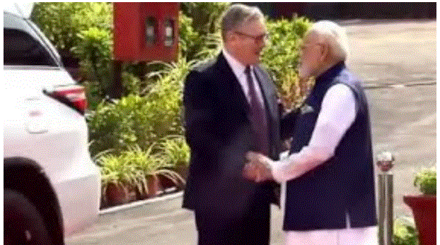मुंबई। प्रधानमंत्री नरेन्द्र मोदी ने बृहस्पतिवार को अपने ब्रिटिश समकक्ष केअर स्टार्मर के साथ व्यापक चर्चा की। चर्चा के दौरान मुख्य रूप से व्यापार, रक्षा, सुरक्षा और महत्वपूर्ण प्रौद्योगिकी के क्षेत्रों में भारत-ब्रिटेन संबंधों को बढ़ावा देने पर ध्यान केंद्रित किया गया। ब्रिटिश नेता ब्रिटेन के 125 सबसे प्रमुख व्यापारिक नेताओं, उद्यमियों और शिक्षाविदों के एक प्रतिनिधिमंडल के साथ बुधवार सुबह दो दिवसीय यात्रा पर मुंबई पहुंचे। स्टार्मर की भारत यात्रा दोनों देशों द्वारा एक ऐतिहासिक मुक्त व्यापार समझौते पर हस्ताक्षर करने के ढाई महीने बाद हुई है।