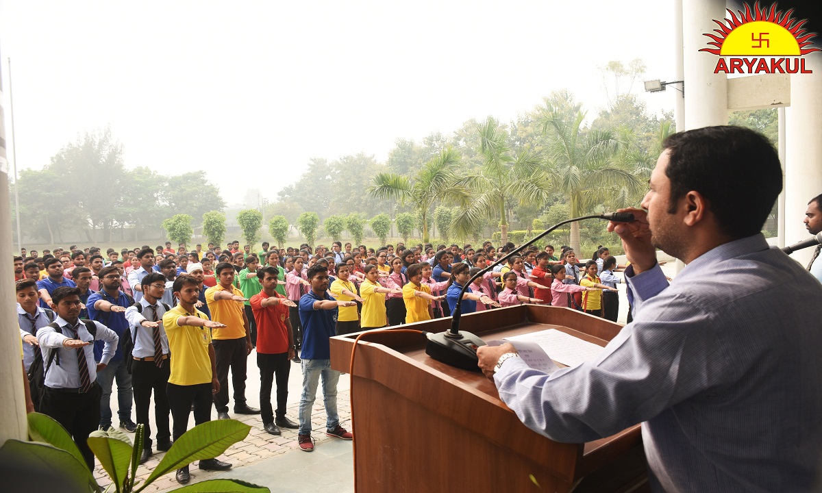 (www.arya-tv.com)बिजनौर स्थित आर्यकुल ग्रुप ऑफ़ कॉलेज में लौह पुरुष सरदार वल्लभभाई पटेल की 144वीं जयंती के अवसर पर उन्हें याद करते हुए शपथ ग्रहण समारोह का आयोजन किया गया। डॉ अंकित सेठ ने कॉलेज के प्रबंध निदेशक सशक्त सिंह की उपस्थिति में छात्र-छात्राओं व् शिक्षक शिक्षिकाओं के साथ मिलकर देश की अखंड़ता और एकता के लिए एक जुट रह कर प्रयास करने की शपथ दिलवाई।