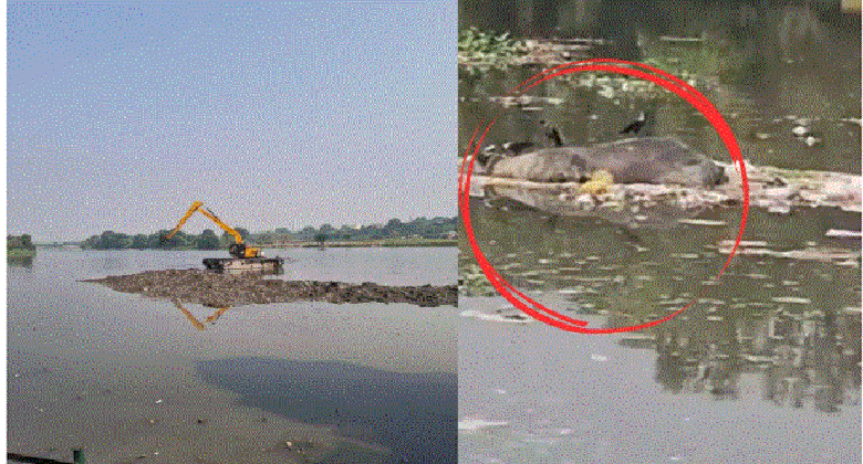 छठ पूजा के लिए गोमती के घाटों की सफाई का काम चल रहा है। कुड़िया घाट की सफाई के लिए भी जेसीबी लगाई गई है, लेकिन ये जेसीबी नदी के किनारों से सिल्ट निकालकर उसे गोमती के बीचोबीच डाले दे रही है जैसे कि वह नदी के समतलीकरण का काम कर रही हो। इसी तरह से कैटल कालोनी से मरी हुई भैंस को गोमती में प्रवाहित कर दिया गया है। भैंस पानी में उतरा रही है और आसपास के इलाकों में दुर्गन्ध फ़ैल रही है, जबकि दो दिन बाद छठ पूजा है।