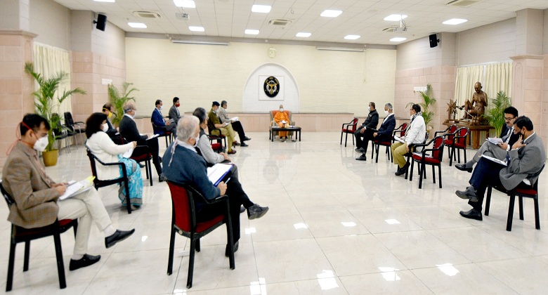 ठक में स्वास्थ्य राज्य मंत्री अतुल गर्ग, मुख्य सचिव आर0के0 तिवारी, कृषि उत्पादन आयुक्त आलोक सिन्हा, अपर मुख्य सचिव गृह अवनीश कुमार अवस्थी, पुलिस महानिदेशक हितेश सी0 अवस्थी, अपर मुख्य सचिव एम0एस0एम0ई0 एवं सूचना नवनीत सहगल, अपर मुख्य सचिव मुख्यमंत्री एस0पी0 गोयल, अपर मुख्य सचिव उच्च शिक्षा मोनिका एस0 गर्ग, अपर मुख्य सचिव कृषि देवेश चतुर्वेदी, अपर मुख्य सचिव स्वास्थ्य अमित मोहन प्रसाद, प्रमुख सचिव चिकित्सा शिक्षा आलोक कुमार, प्रमुख सचिव आवास दीपक कुमार, प्रमुख सचिव पशुपालन भुवनेश कुमार, सचिव मुख्यमंत्री आलोक कुमार, राहत आयुक्त संजय गोयल, सूचना निदेशक शिशिर सहित अन्य वरिष्ठ अधिकारी उपस्थित थे।