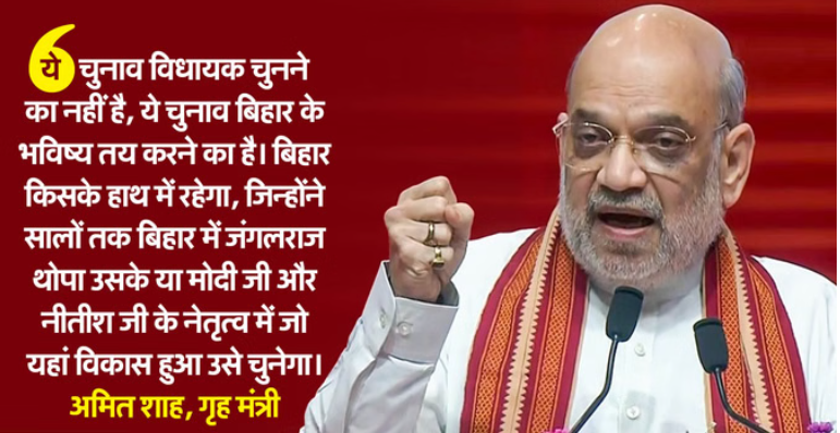वहीं, नालंदा में अमित शाह ने कहा कि ये चुनाव किसी को विधायक या मंत्री बनाने के लिए नहीं हैं। ये चुनाव उस ‘जंगलराज’ को रोकने के लिए हैं, जो अपना वेष बदलकर आएगा। लालू-राबड़ी के शासन में 38 नरसंहार हुए। नालंदा के कई लोग मौत के घाट उतरे गए थे। किडनैपिंग, हत्या, लूट जैसे गैरकानूनी काम होते थे। लेकिन नीतीश ने इस धंधे पर रोक लगा दिया और लालू के आतंक को समाप्त कर दिया।