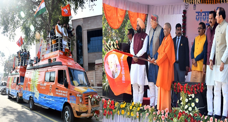 (www.arya-tv.com) उत्तर प्रदेश के मुख्यमंत्री योगी आदित्यनाथ जी ने आज यहां ‘नमामि गंगे परियोजना’ के अन्तर्गत उत्तर प्रदेश सरकार द्वारा आयोजित ‘गंगा यात्रा’ हेतु बिजनौर एवं बलिया के लिए गंगा रथों को झण्डी दिखाकर रवाना किया। उन्होंने कहा कि उत्तर प्रदेश देश का पहला राज्य है जहां ‘गंगा यात्रा’ का आयोजन किया जा रहा है। इस अवसर उन्होंने ‘गंगा यात्रा’ के थीम सांग को भी लाॅन्च किया।